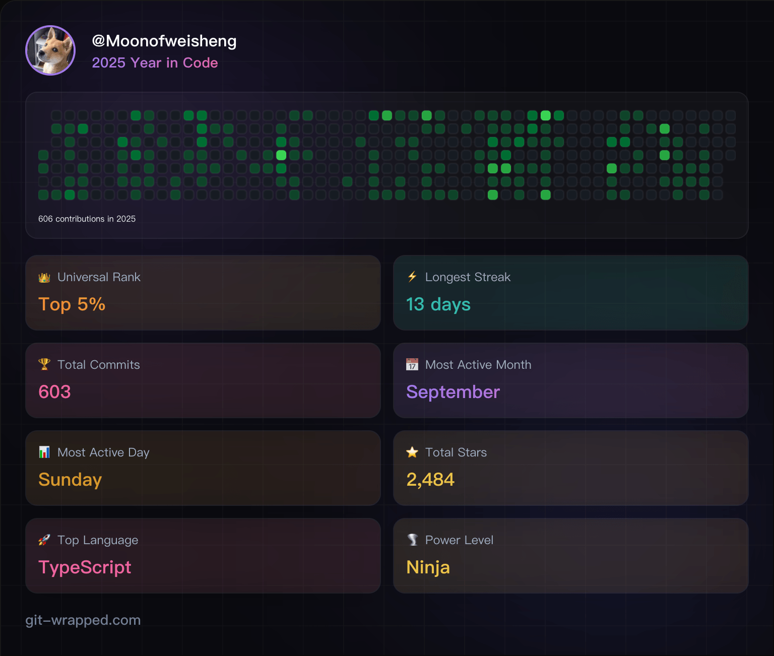 参与开源项目是个人成长最好的方式之一。不过很遗憾,由于家里和自身身体上的一些原因,近两个月很少在开源项目上投入精力,看看我的GitHub 2025总结吧。