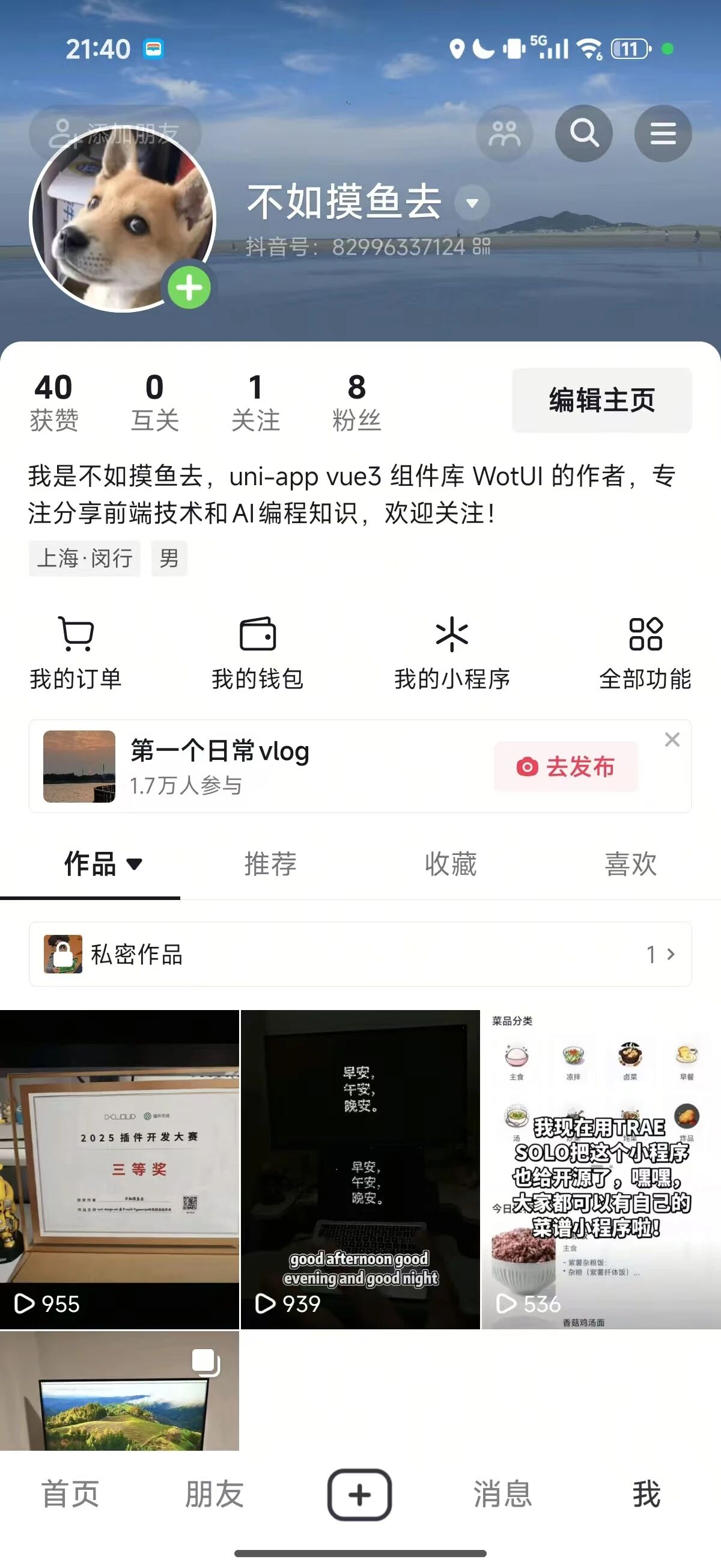 同时也结交了很多社区朋友,像来自uni-helper团队的各位好朋友们,大哥 ModyQyW,FD 哥 FliPPeDround等等,还有来自unibest的 菲鸽,还有我的群友们,也非常感谢他们。
