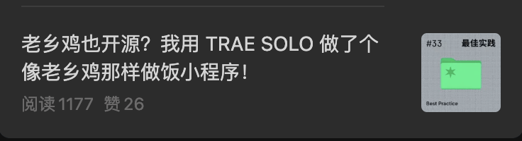 我也在努力探索 AI Coding 工具在前端开发上的落地,写了多篇文章被 Trae 公众号收录为最佳实践。