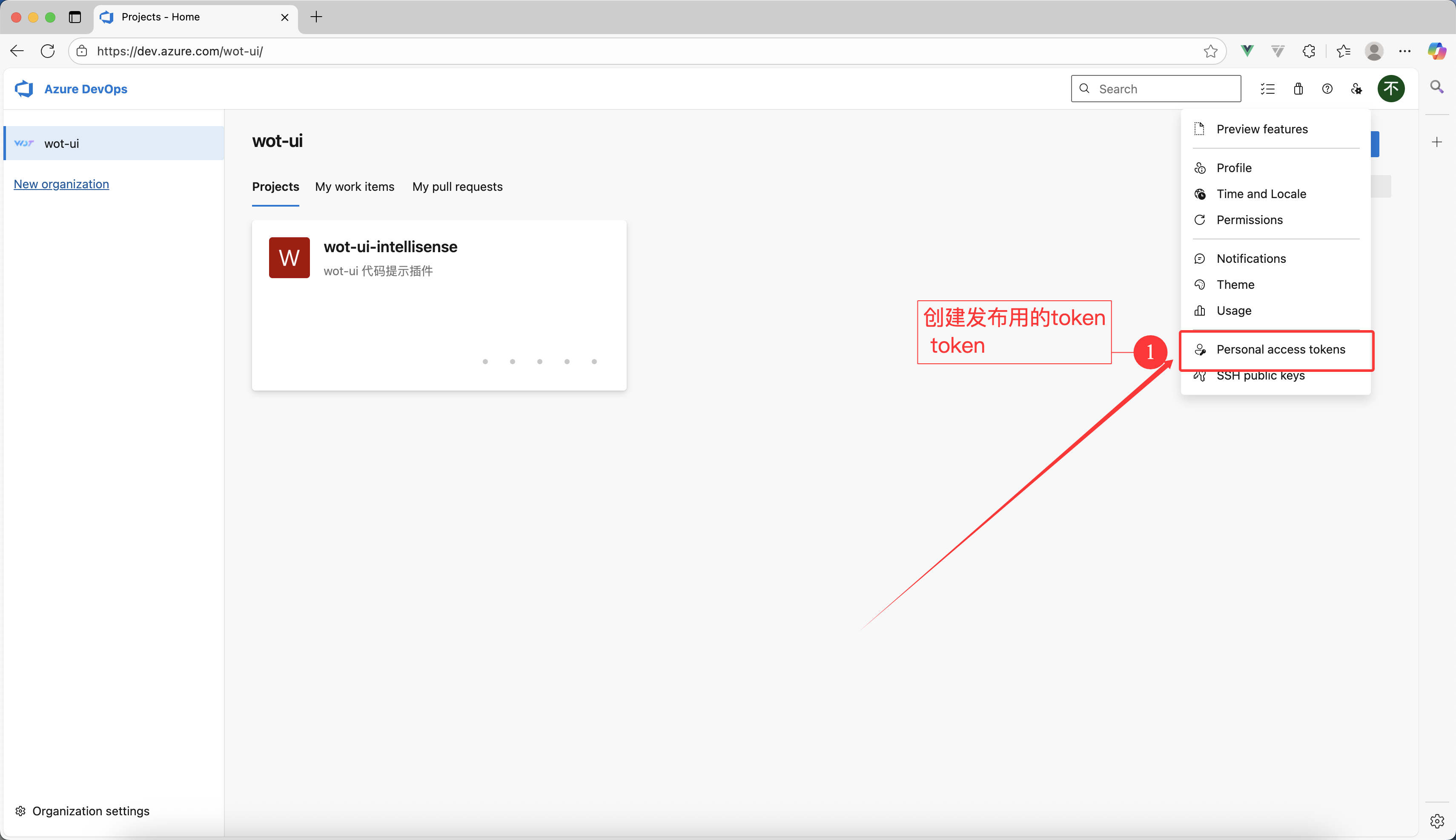 注册并登录到:https://dev.azure.com/,创建对应的组织后按下图操作点击。