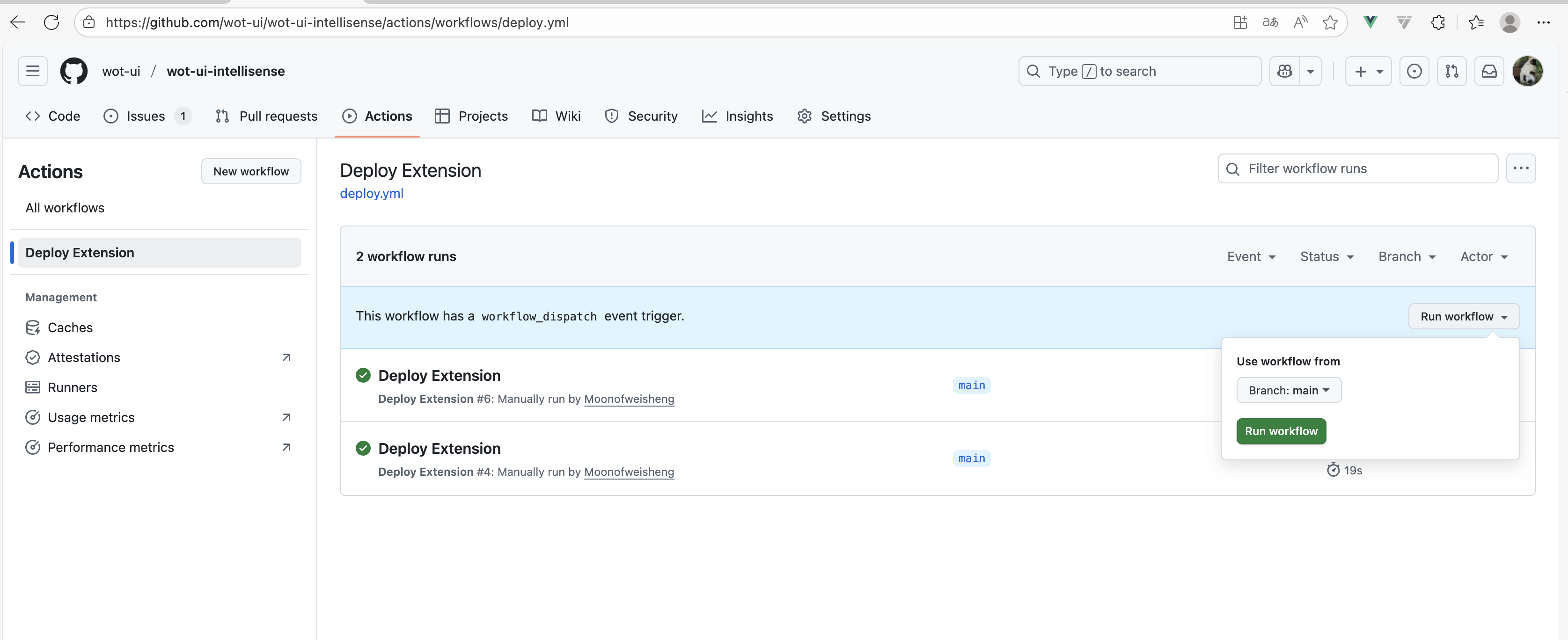 开发 wot-ui intellisense 插件时,我们一开始是手动发布的,不仅效率低下,还容易因为人为操作失误导致发布失败。因此,我们使用 GitHub Actions 来实现自动化发布,来解决发布工程化问题。