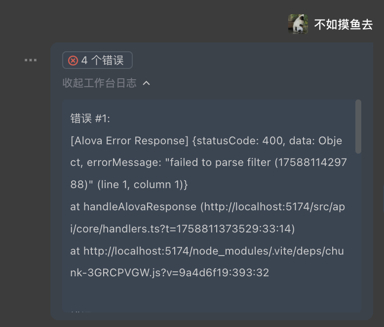 不过此时项目还是跑不起来的,控制台报错了,我们直接将控制台报错发送给 Trae SOLO。