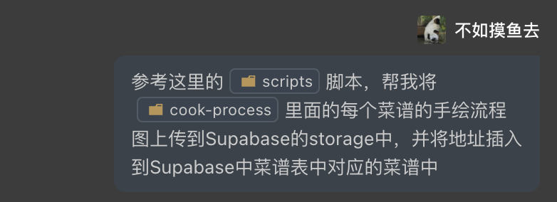 首先还是让 Trae SOLO 将新增的手绘流程图上传到 Supabase 并将其地址插入到对应的菜谱中