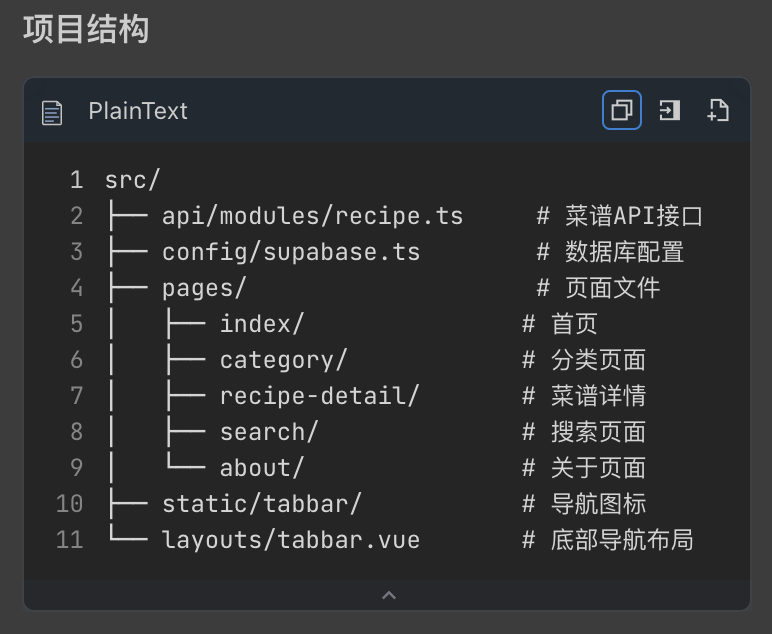 - 使用unocss编写样式,使用rpx做单位经过一轮开发后,项目结构如下: