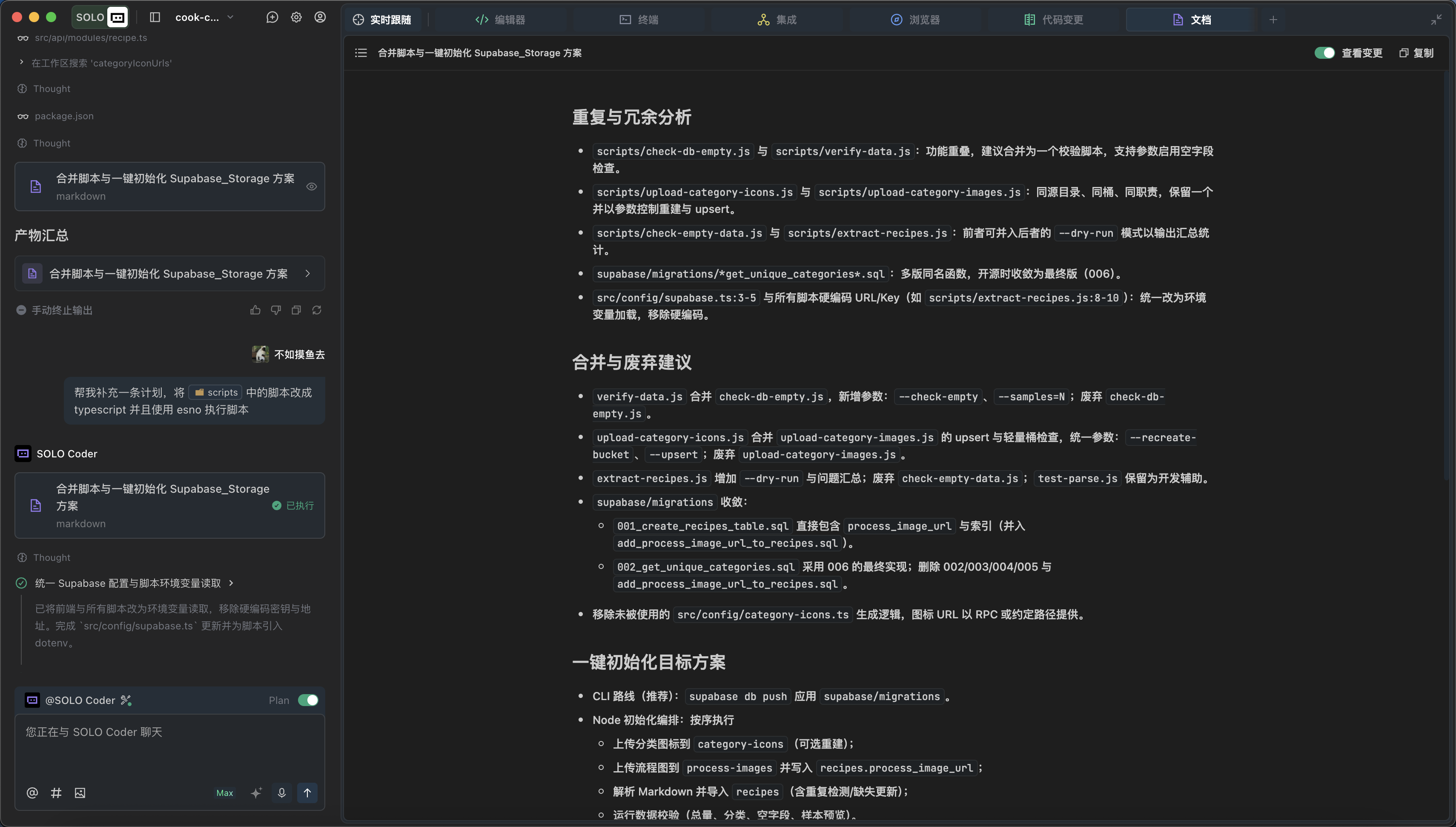 我们仔细看一下 SOLO Coder 的方案,没有问题就让它开始执行。