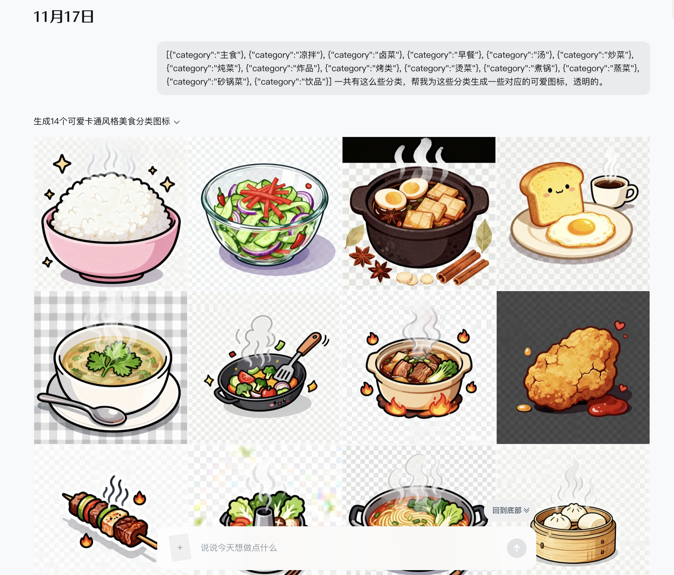 同时我使用 即梦AI 给不同分类生成了个可爱的图标,非常简单的提示词。